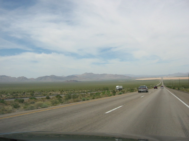 アメリカの道路は町の中心以外は、このような道路で、走りやすい!でも、単調な道なので、眠たいよ!
